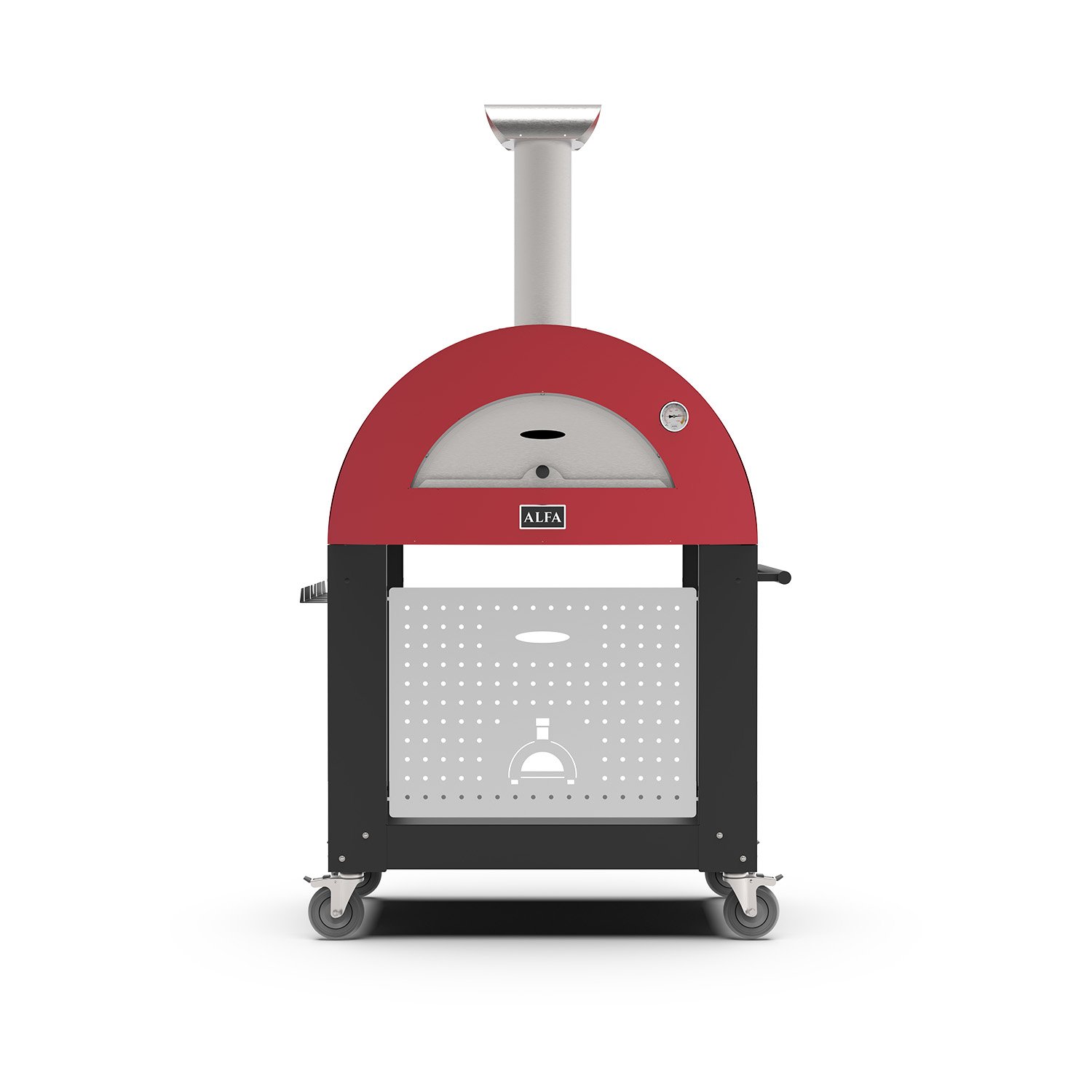 The base for Alfa’s 2 Pizze oven allows you to easily move the oven thanks to the convenient professional wheels with brakes and at the same time helps you to optimise your outdoor space thanks to the practical shelf, useful for storing wood or hiding the gas cylinder.