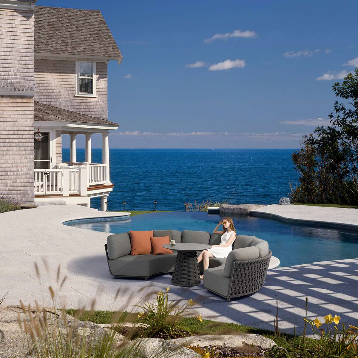 - Elegant and Functional Design – A curved profile that enhances sectional configurations for modern outdoor layouts.