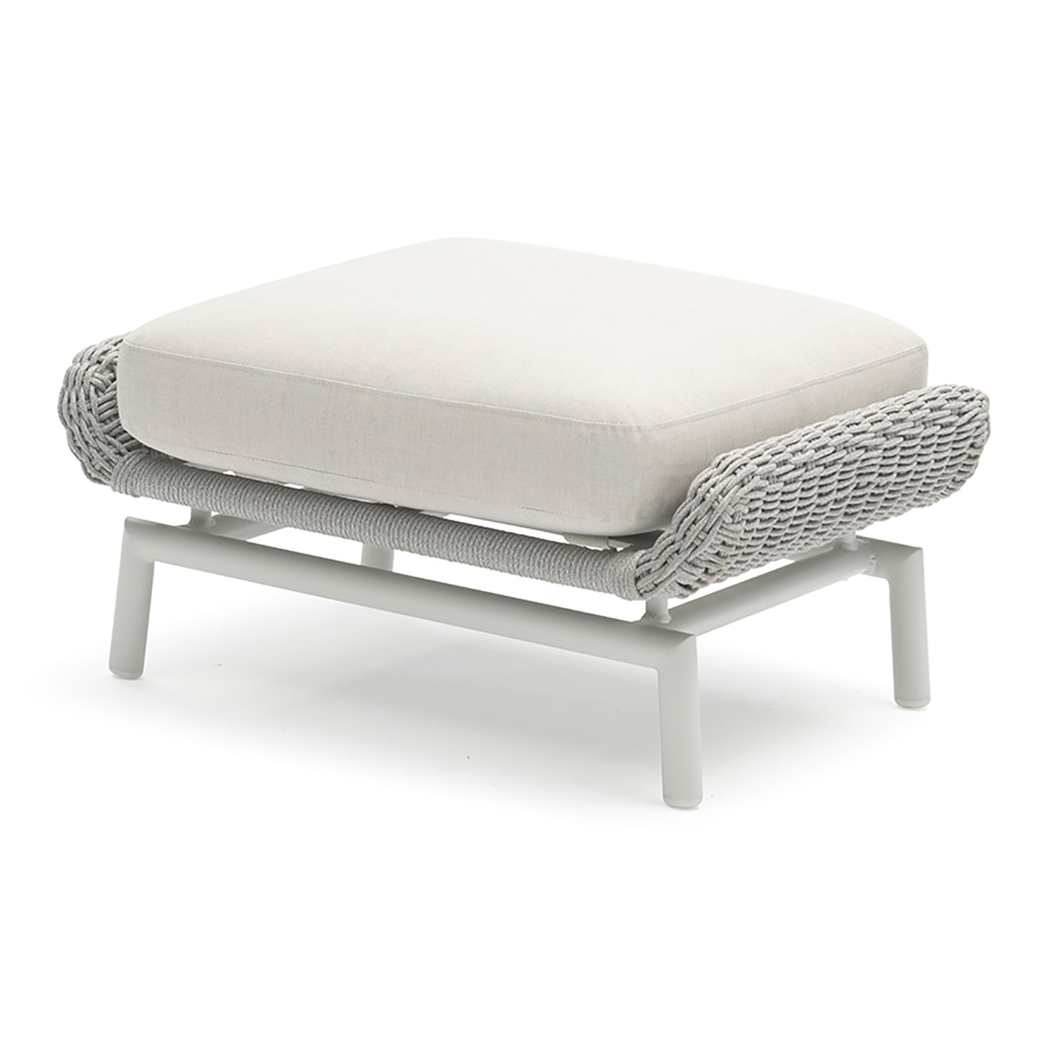 Crafted with a contract-grade welded aluminum frame and finished with Tiger brand powder coating, the SCOOP Ottoman ensures strength and long-term durability. The UV-treated outdoor rope and COUTUREtex waterproof fabric provide protection against weather conditions while maintaining a refined appearance. High-density foam cushions add plush comfort, making this ottoman the perfect blend of luxury and practicality.