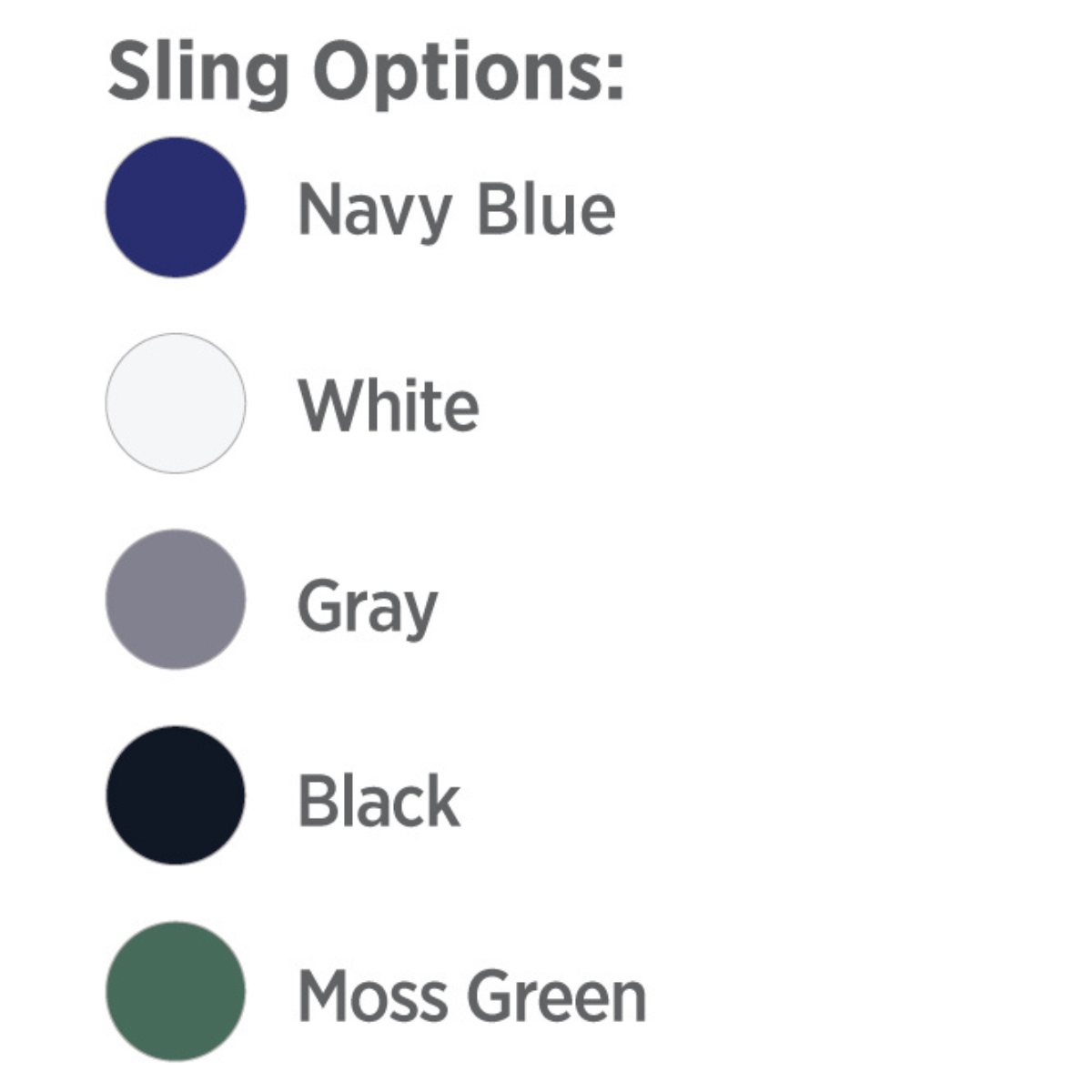 | Sling Color Options | Black, Gray, Moss, White, and Navy |