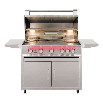 Master the art of outdoor cooking with the TrueFlame 40″ 5-Burner Freestanding Gas Grill. This powerful grill features five #304 cast stainless steel burners and a 10,000 BTU infrared back burner, delivering even heat across square stainless steel grates. Heat zone separators and flame tamers provide total control and consistent results. Available now at The Outdoor Store, this deluxe cart grill is ideal for chefs who demand power, precision, and performance.